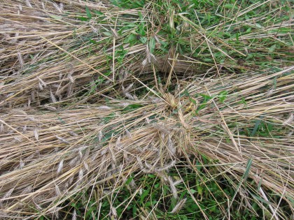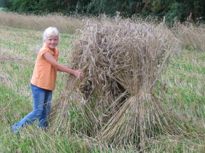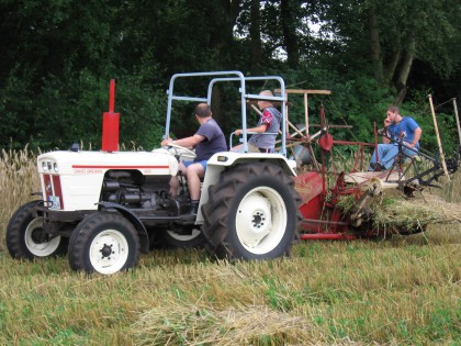 Mit unseren historischen Mähmaschinen wird das Getreide von Mitgliedern der Schlepperfreunde abgemäht und in Garben zum Trocknen aufgestellt.