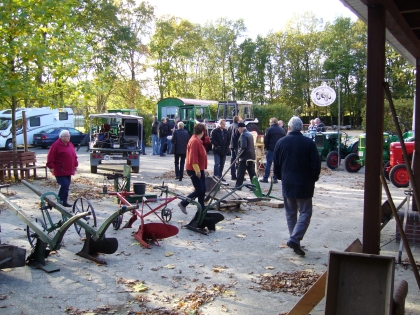 Auch die Schlepperfreunde Flachsmeer zeigen altes Gerät. Ob Pflüge in verschiedenen Versionen, eine Flachsbreche, eine Waage, einen alten Kornweiher oder eine Ansammlung alter Stationärmotoren. Natürlich waren auch einige schöne restaurierte Traktoren mit dabei!